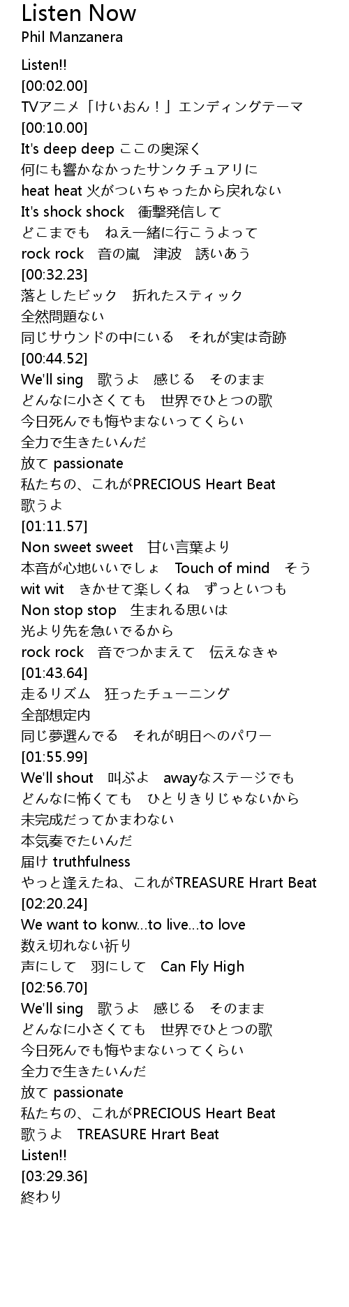 | [03:15.73] | 私たちの、これがPRECIOUS Heart Beat |