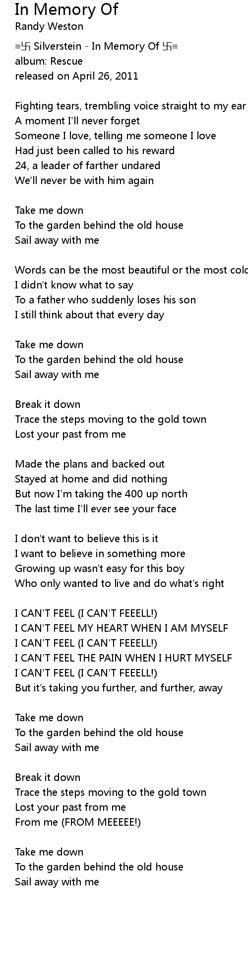 | Song | In Memory Of |