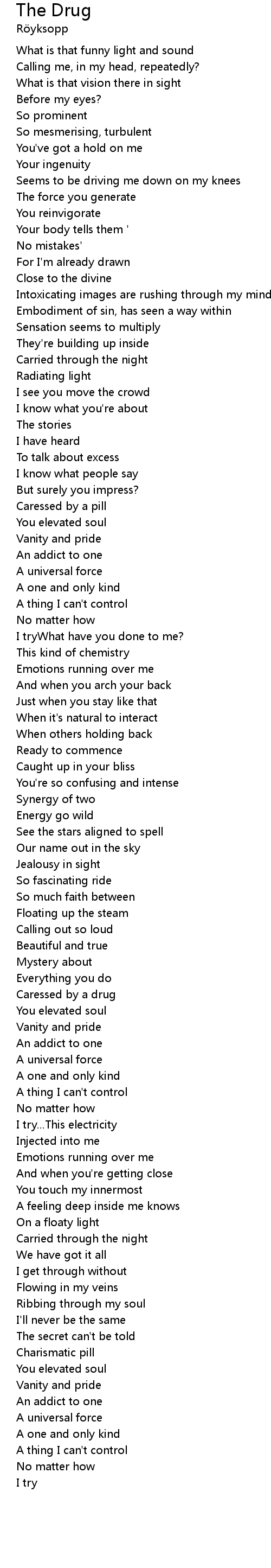 | Caressed by a drug | |