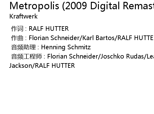 | [00:00.000] | 音频工程师 : Florian Schneider/Joschko Rudas/Leanard Jackson/RALF HUTTER |