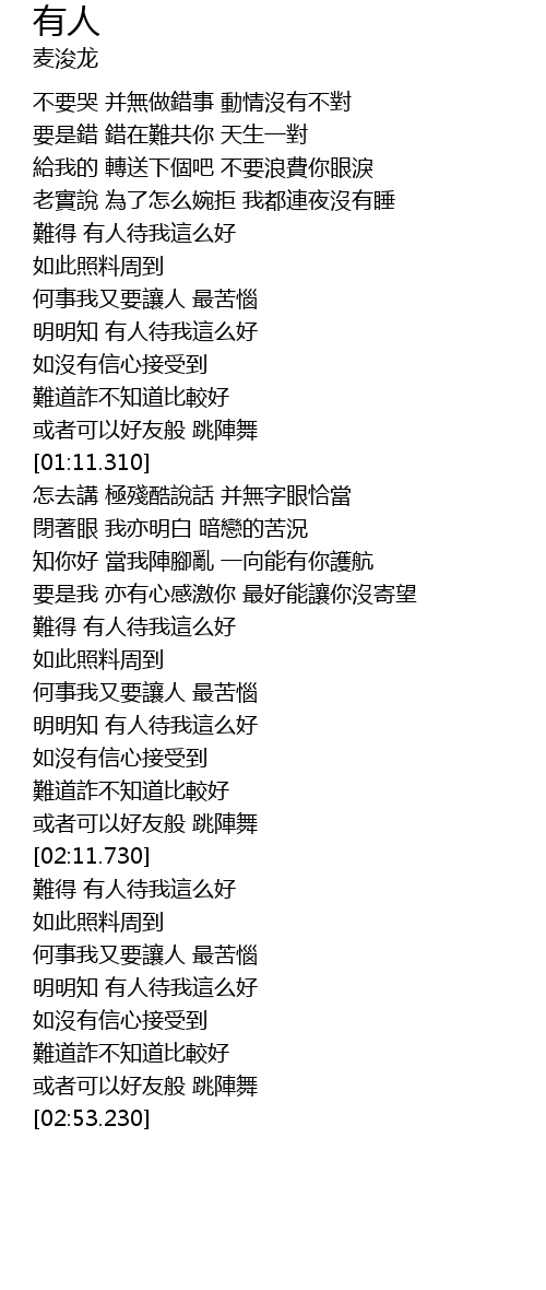 | [01:52.560] | 明明知 有人待我這么好 |