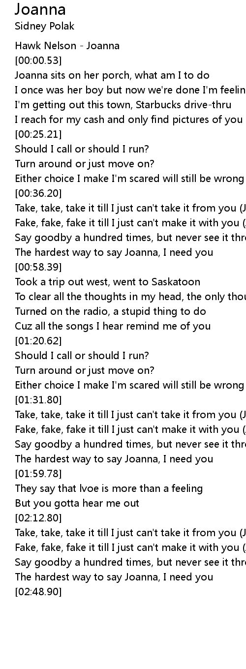 [02:13.40] Take, take, take it till I just can't take it from you (Joanna)