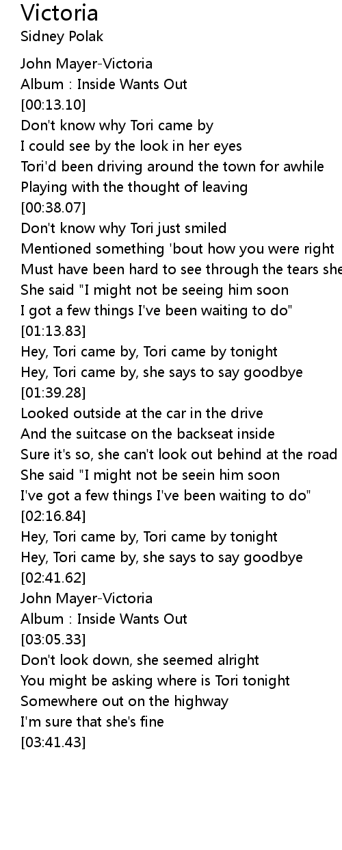 | [00:00.91] | John Mayer-Victoria |