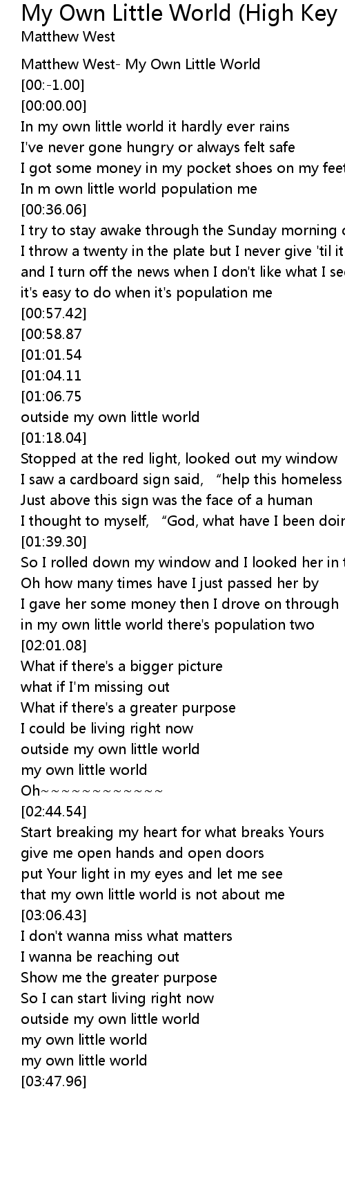 | Song | My Own Little World (High Key Performance Track Without Background Vocals) |