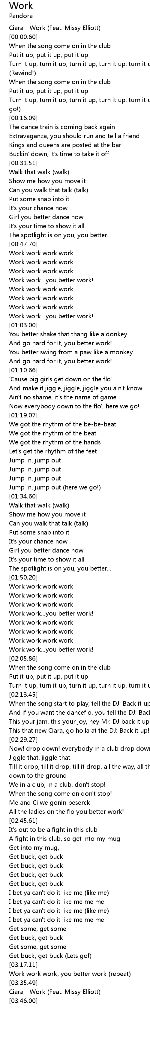 [00:00.30] Ciara - Work (Feat. Missy Elliott)