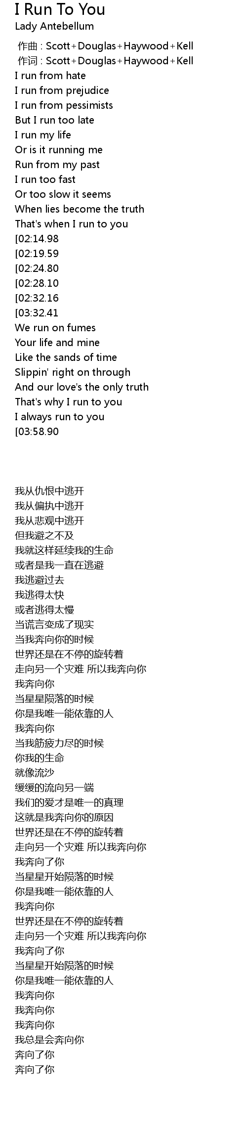 | [03:35.30][03:32.41][03:21.50][02:38.49][01:31.15] | I run to you |