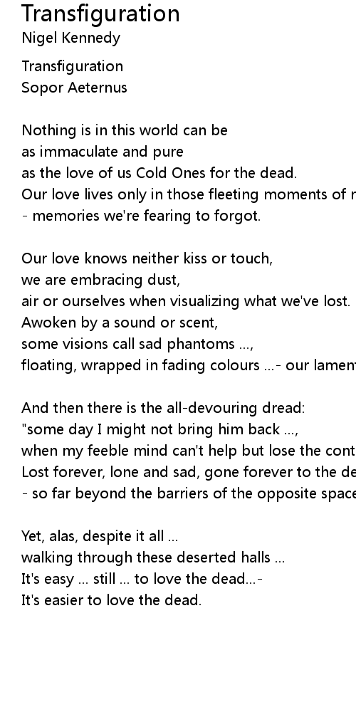 as the love of us Cold Ones for the dead. |