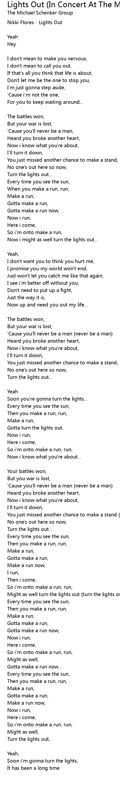 Lights Out (In Concert At The Manchester Apollo) Lyrics