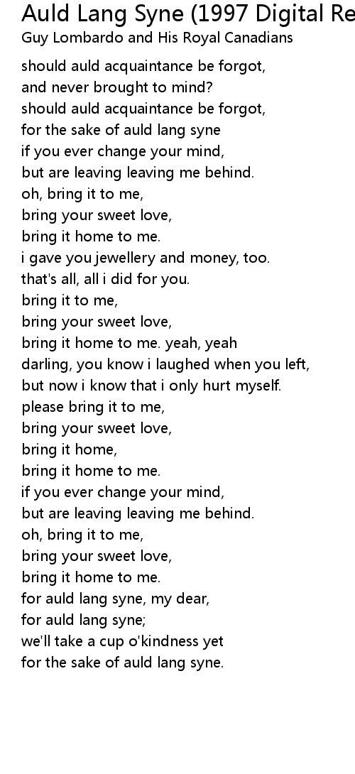 for auld lang syne; |