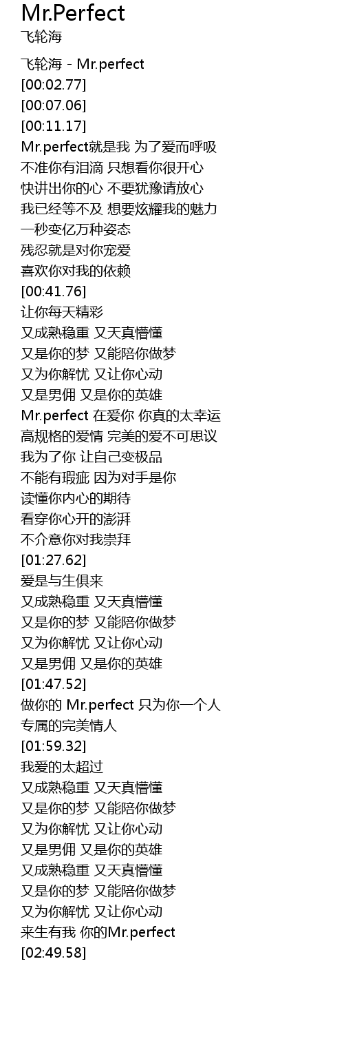 | [00:00.00] | 飞轮海 - Mr.perfect |
