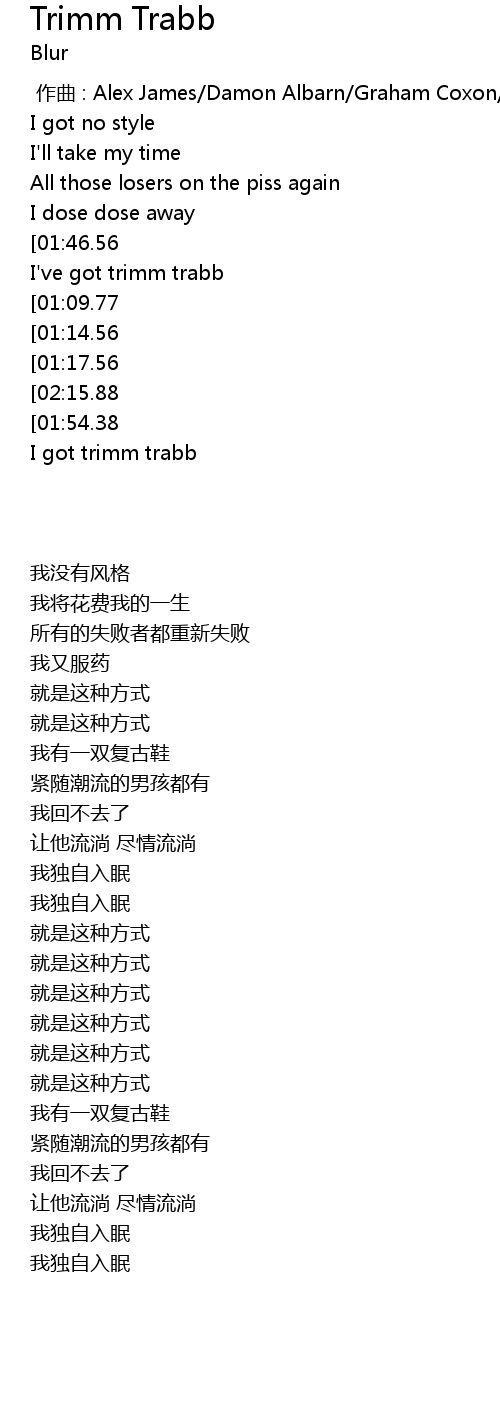 | [00:00.00] | zuo qu : Alex James Damon Albarn Graham Coxon Dave Rowntree |