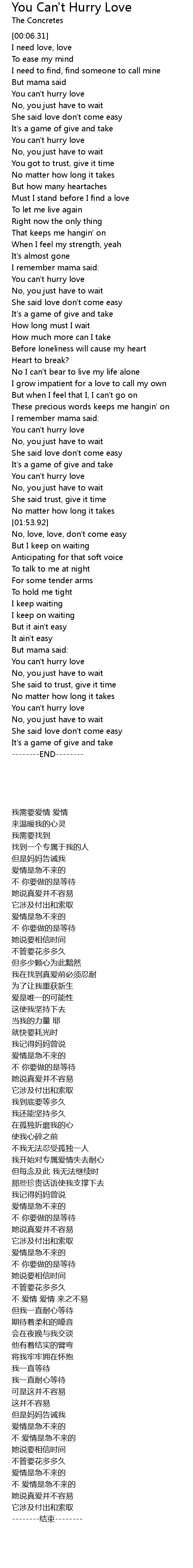 You can't hurry love |