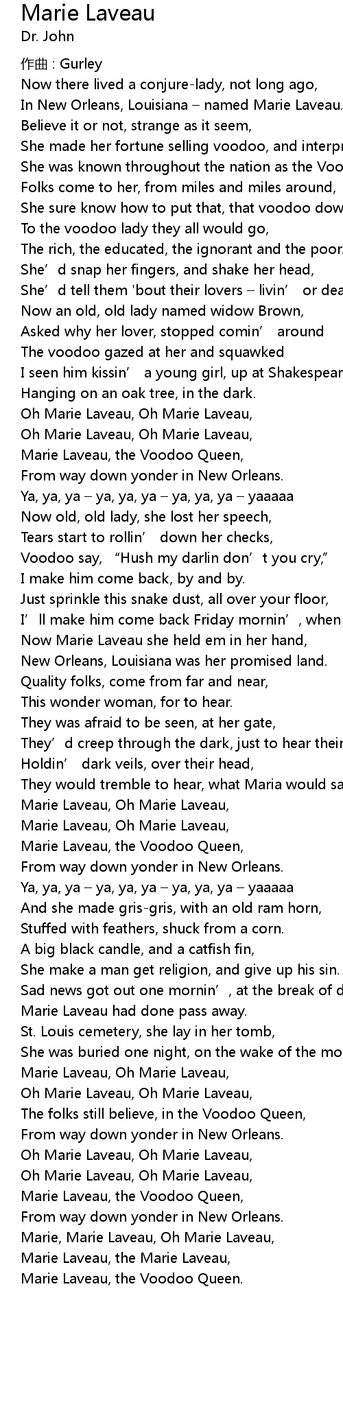 | Marie, Marie Laveau, Oh Marie Laveau, | |
