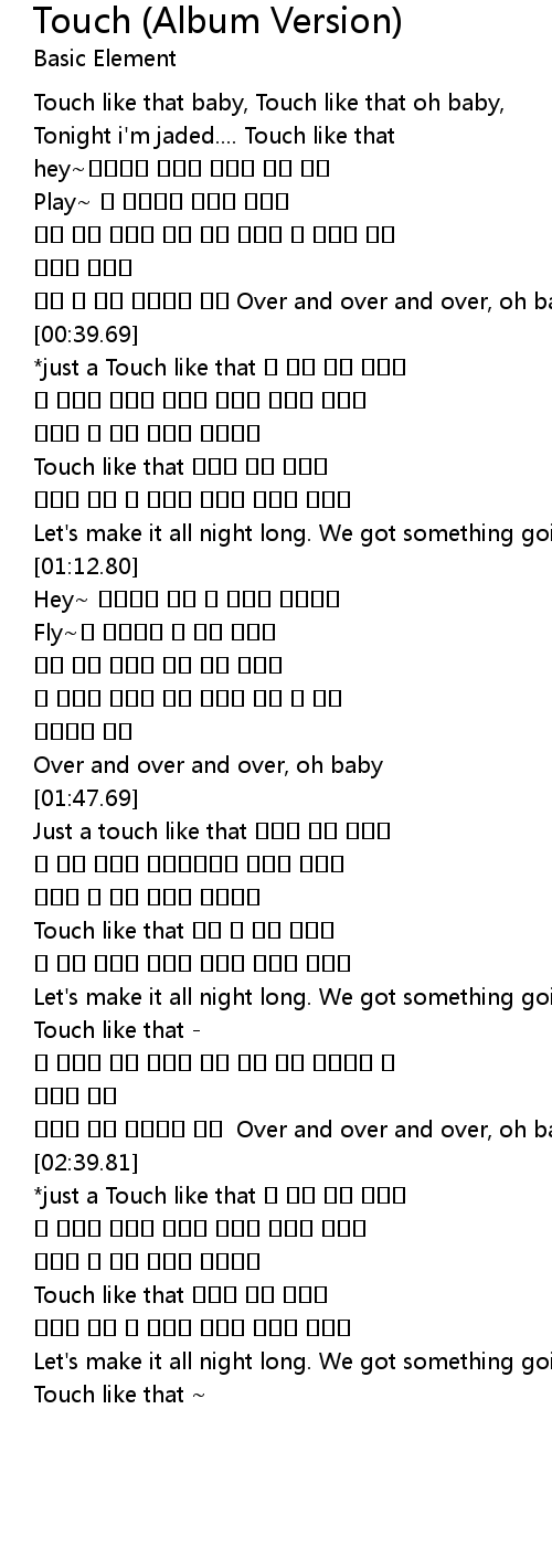 | [00:00.00] | Touch like that baby, Touch like that oh baby, |