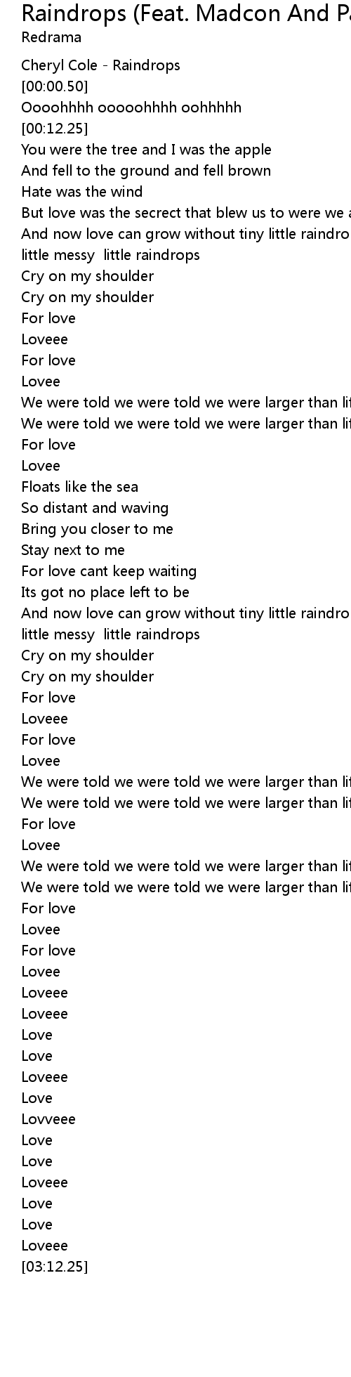 And now love can grow without tiny little raindrop tiny little tiny little messy little raindrops |