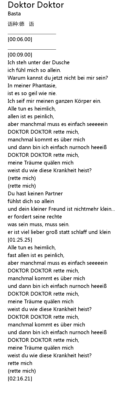 | [02:01.03] | DOKTOR DOKTOR rette mich, |