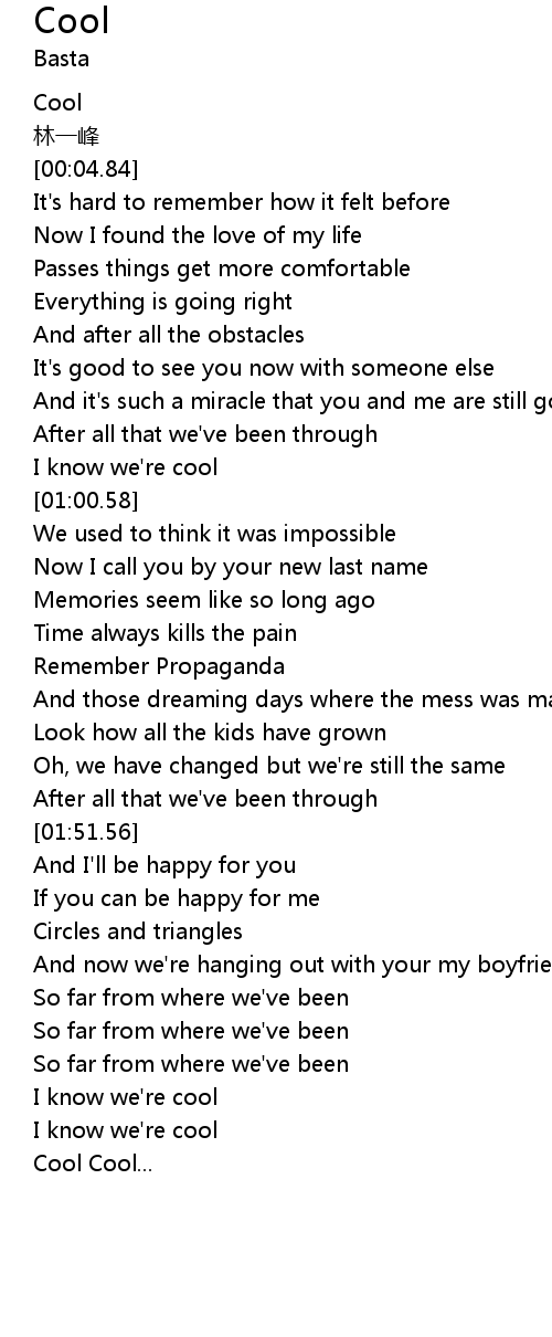 | [00:46.29] | And it's such a miracle that you and me are still good friends |