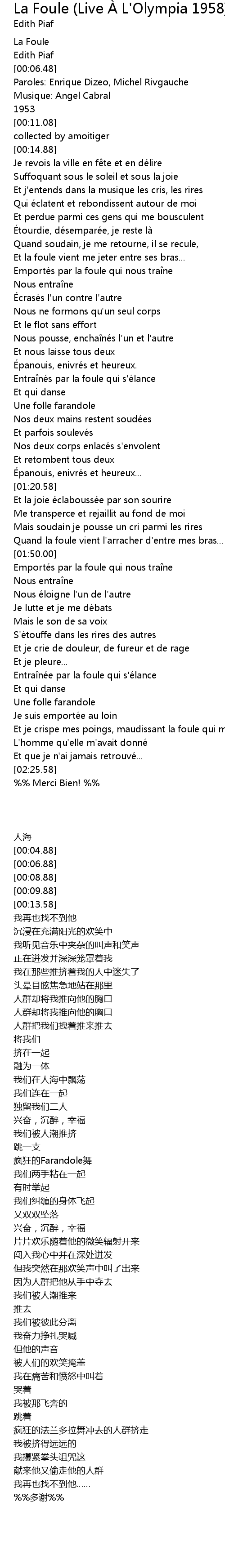 La Foule (Live À L'Olympia 1958) La Foule Live À L' Olympia 1958 Lyrics