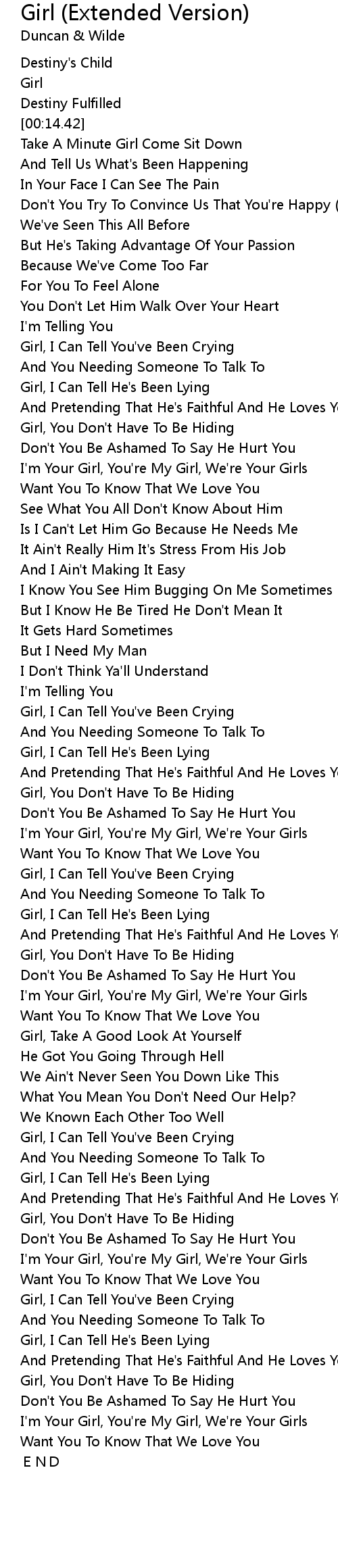 | [00:43.18] | Girl, I Can Tell You've Been Crying |