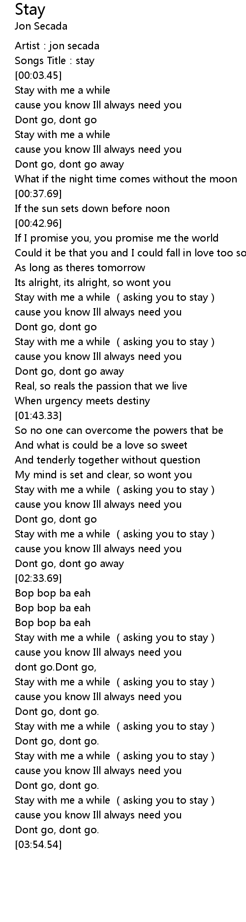 | [03:30.45] | Stay with me a while (asking you to stay) |