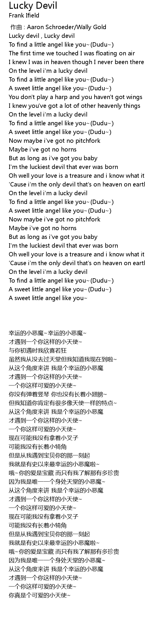 | [00:20.459] | A sweet little angel like you Dudu |