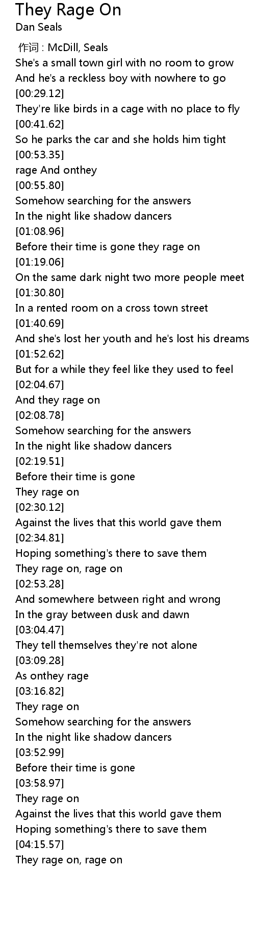 | [00:33.43] | They're like birds in a cage with no place to fly |