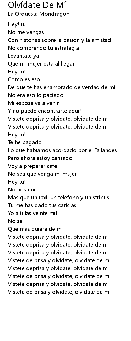 | Vistete deprisa y olvidate, olvidate de mi | |