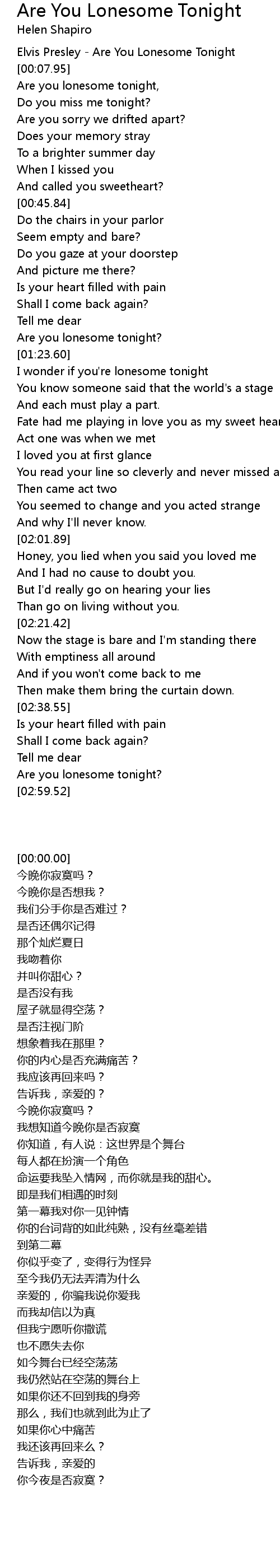 Are you lonesome tonight? |