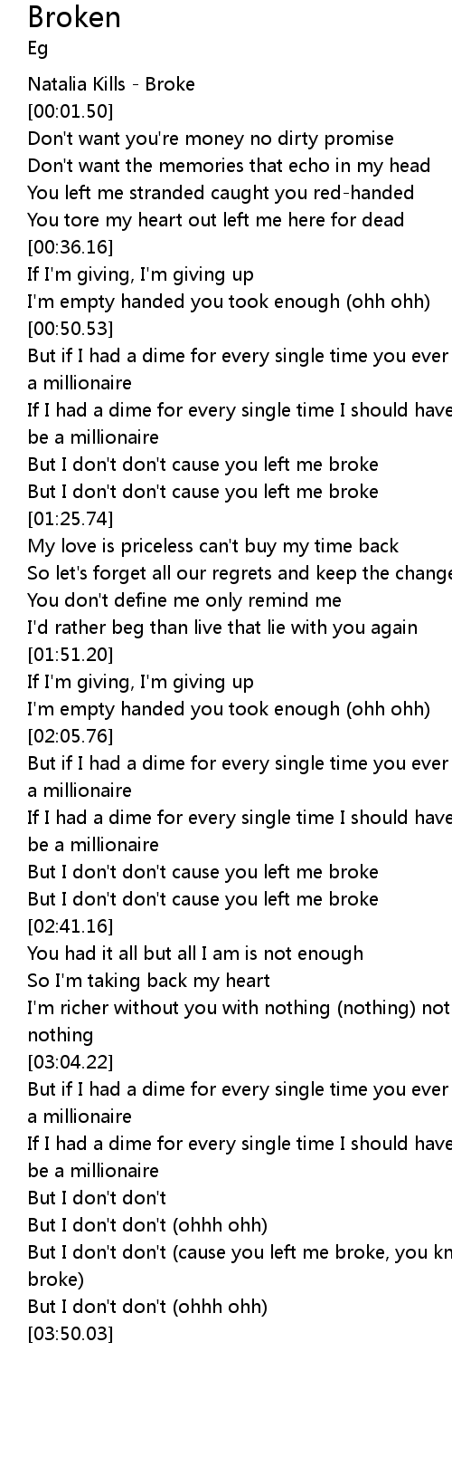 But I don't don't (cause you left me broke, you know you left me broke) |