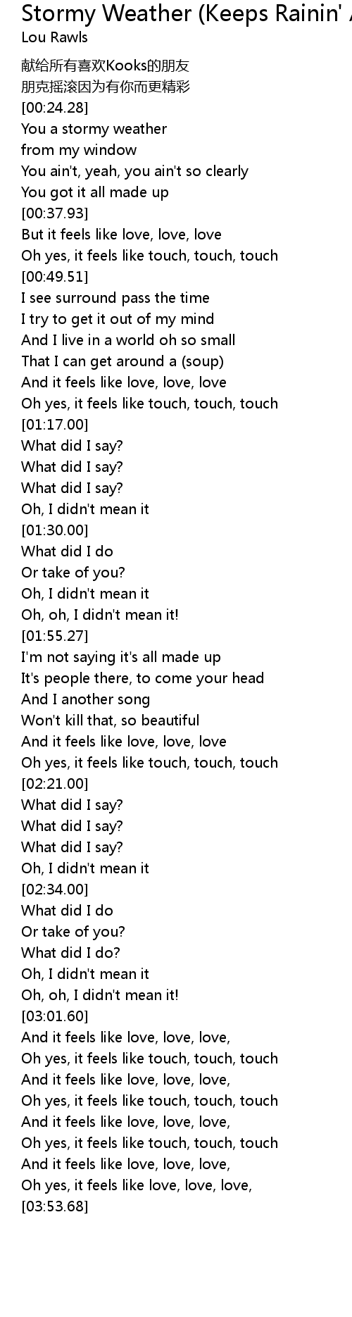 | Song | Stormy Weather (Keeps Rainin' All The Time) (2006 Digital Remaster) |