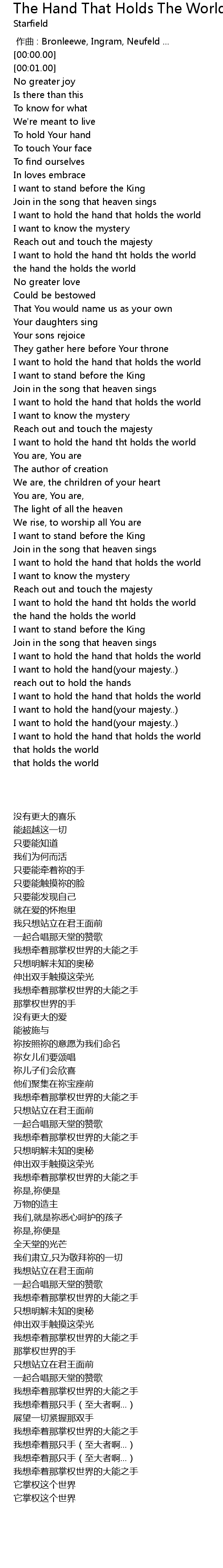 | [04:22.00] | I want to hold the hand that holds the world |