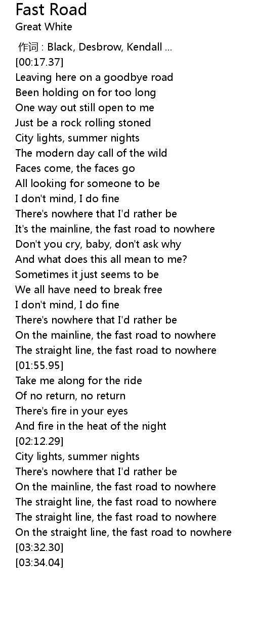 | [01:47.24] | The straight line, the fast road to nowhere |