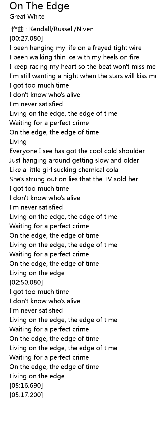 | [00:35.900] | I been hanging my life on a frayed tight wire |