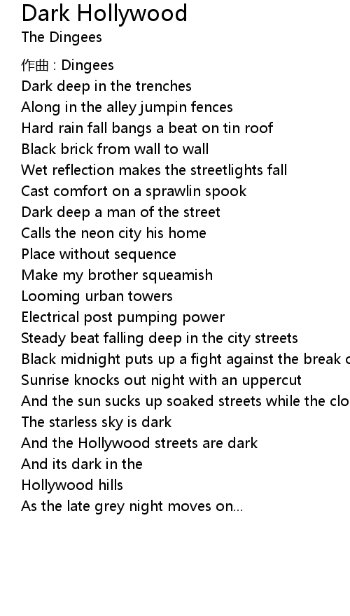 | And the Hollywood streets are dark | |