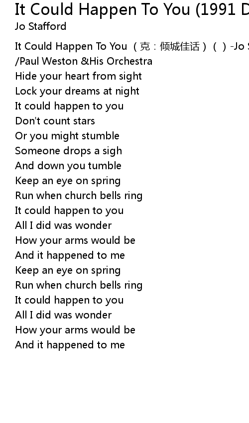 | [00:00.00] | It Could Happen To You kè: qīng chéng jiā huà Jo Stafford Paul Weston His Orchestra |