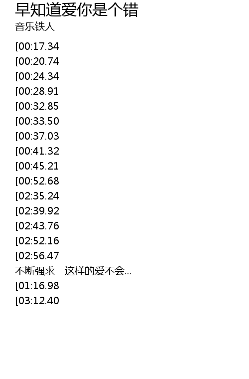 | [03:15.34][02:35.24][00:52.96] | zao zhi dao ai ni shi ge cuo |