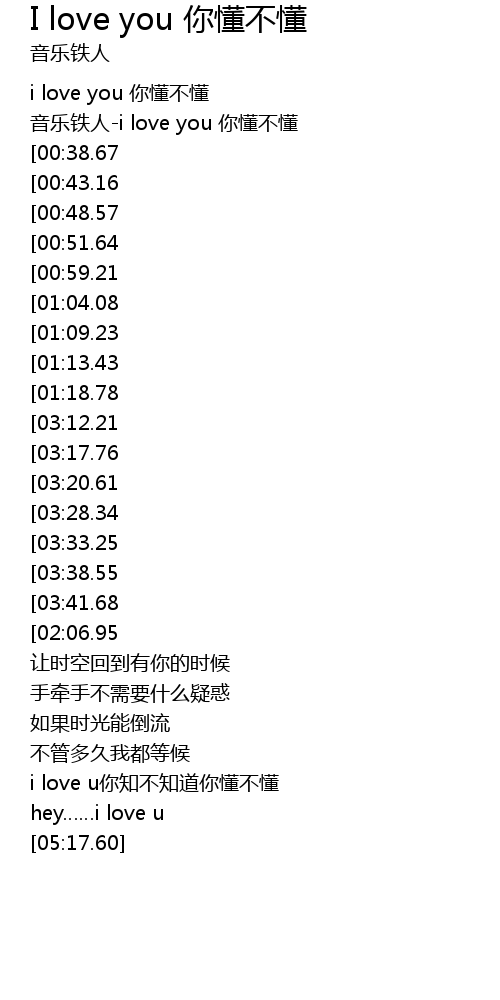 | [00:21.47] | 音乐铁人-i love you 你懂不懂 |