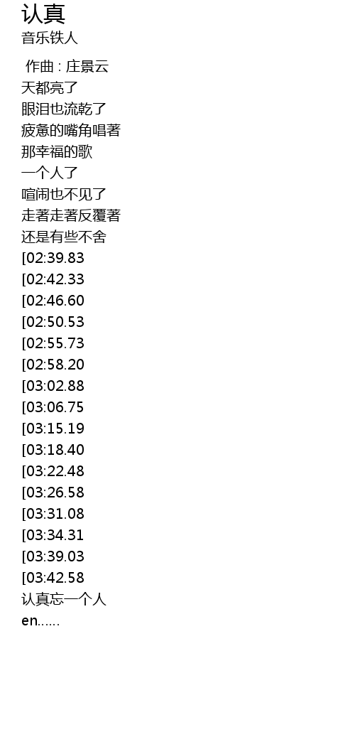 | [02:03.51][03:31.08] | 想认真忘一个人 |