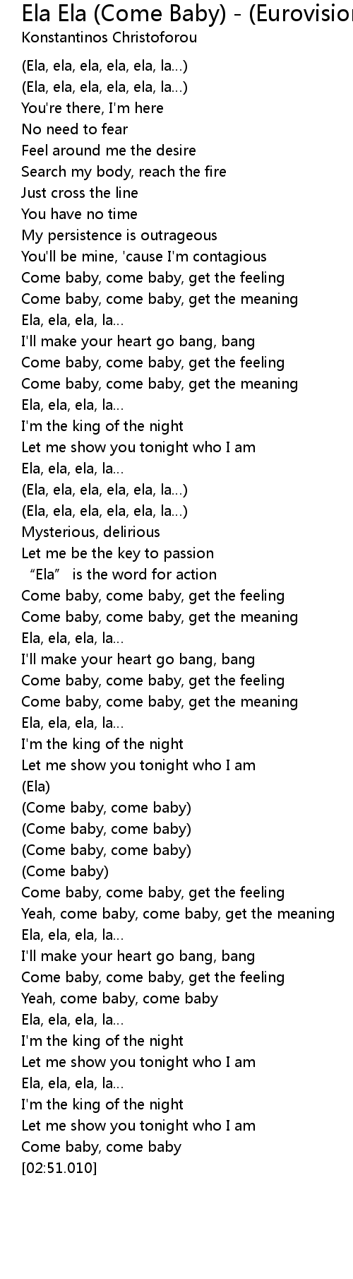 | Song | Ela Ela (Come Baby) - (Eurovision Version) |