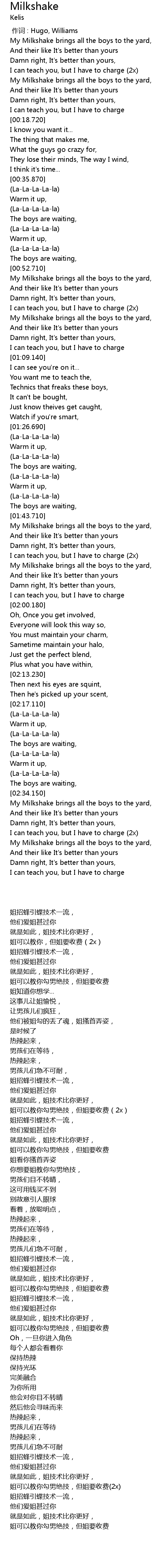 | [00:53.390] | My Milkshake brings all the boys to the yard, |