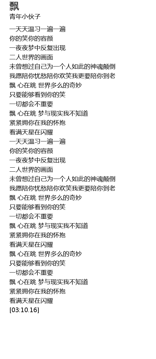| [02:29.47] | 飘 心在跳 梦与现实我不知道 |