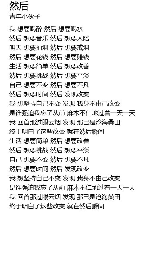 | [00:13.88] | 然后 想要音乐 然后 想要人陪 |