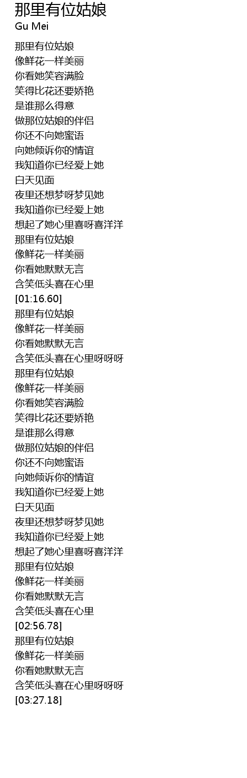 | [01:31.78] | nà lǐ yǒu wèi gū niáng |