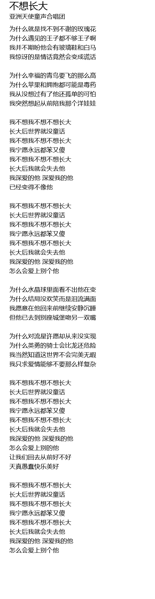 | wǒ bù xiǎng wǒ bù xiǎng bù xiǎng zhǎng dà | |