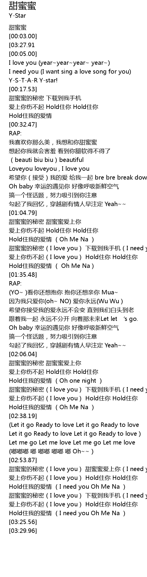 | [03:10.13] | 甜蜜蜜的秘密(I love you) 下载到我手机(I need you) |