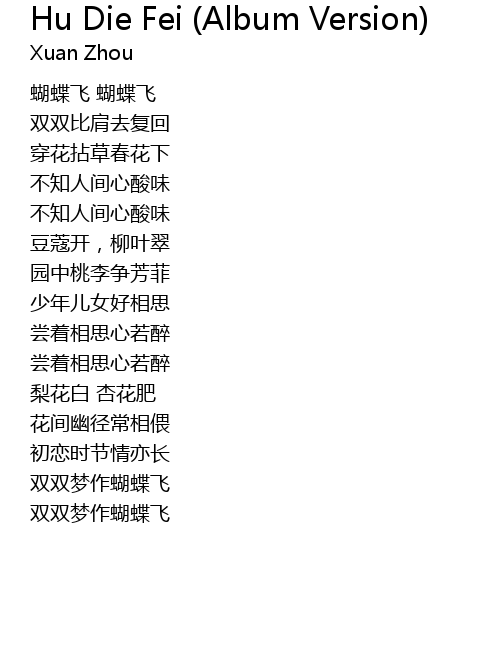 | [00:11.91] | hú dié fēi hú dié fēi |