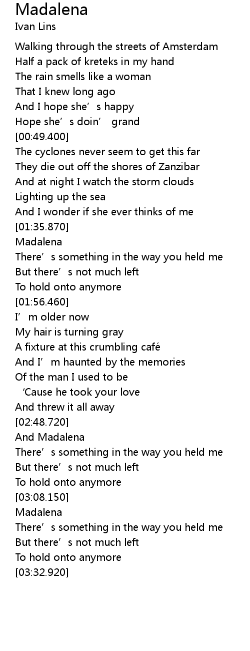 | [00:31.900] | Half a pack of kreteks in my hand |