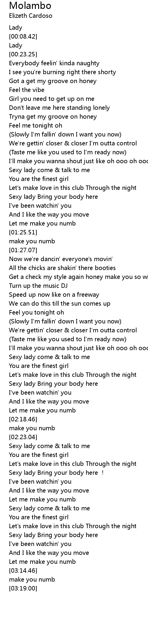 | [03:04.05] | Sexy lady Bring your body here |
