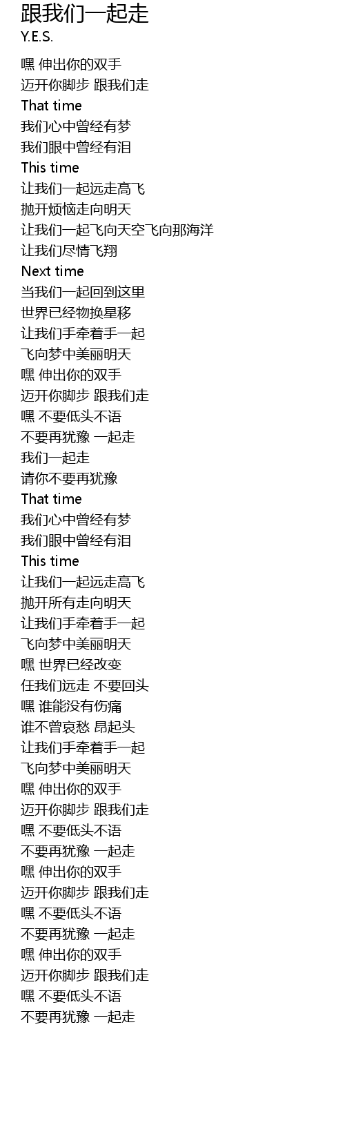 | [01:36.52] | wǒ men yì qǐ zǒu |