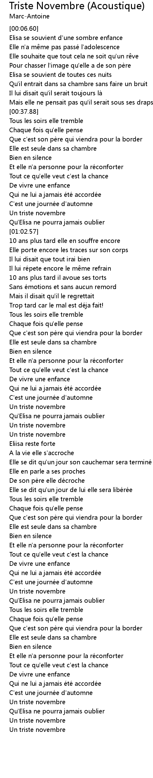 | [00:08.64] | Elisa se souvient d'une sombre enfance |